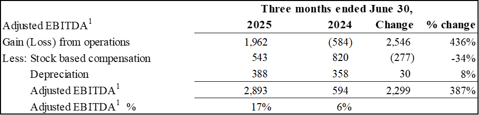 Increased Working Capital from Cash Flow: The Company’s balance sheet continued to strengthen with working capital1 increasing to $40.6 million, up $9.2 million, or 30% from $31.3 million at the end of Q1 2025, as a result of another quarter of cash generation. Cash provided by operating activities of $8.3 million or $0.06 per share. Prior to working capital movements, cash generated from operating activities was $6.3 million, or $0.04 per share.